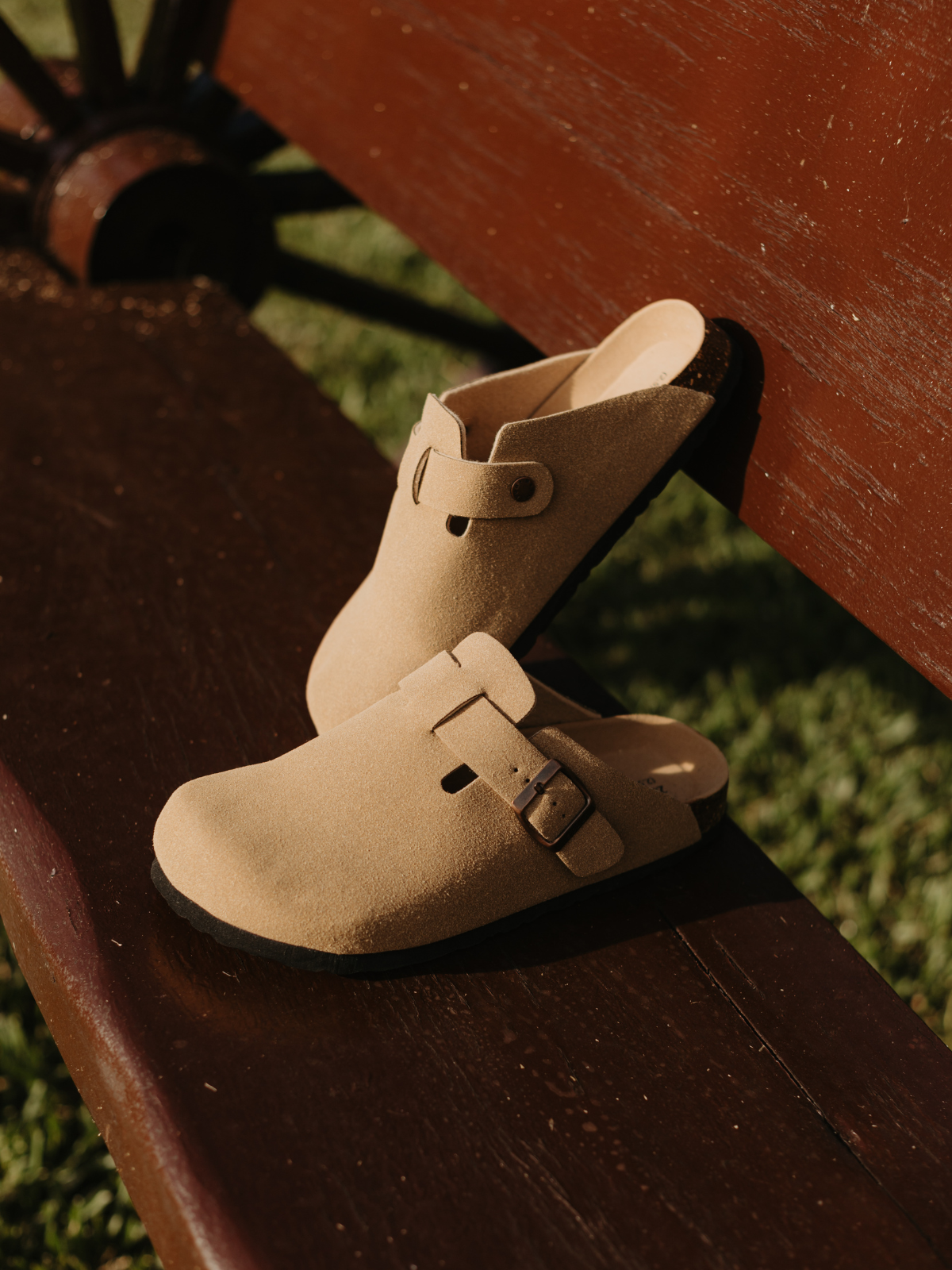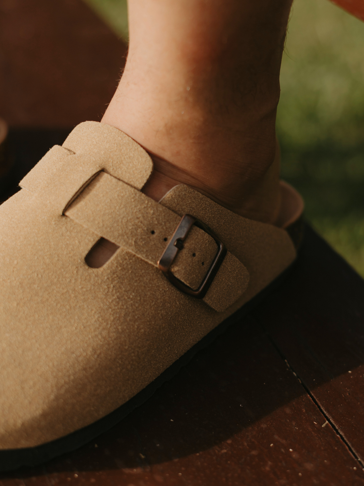Feita em cortiça, um tecido vegetal natural, obtido da casca do sobreiro, uma árvore da família do carvalho. É um material leve e flexível, adapta-se à forma do pé e possui uma camada extra de amortecimento em espuma super suave, forrada com camurça.
